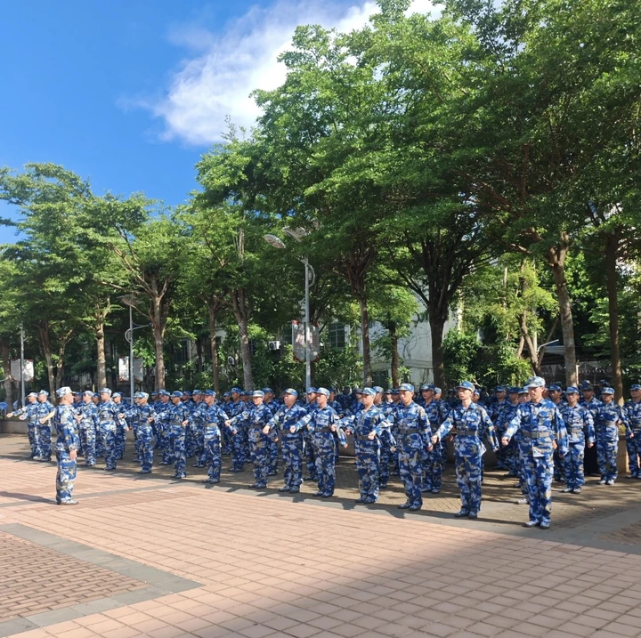 烈日当空,同学们军姿挺拔,目光如炬。每一个动作都经过千锤百炼,每一声口号都响彻云霄。汗水浸透衣衫,脚步依然坚定;阳光灼热,斗志愈发昂扬。这正是青春最美的模样——在挑战中突破自我,在坚持中淬炼成钢。
