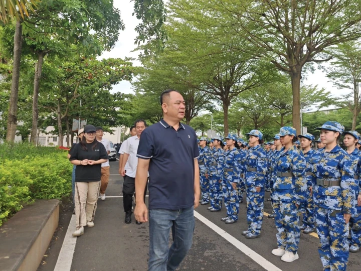 热带农业技术学院党总支书记郑冠波带领全体辅导员深入训练场,细致查看训练情况,亲切慰问参训新生。老师们的充分肯定和殷切嘱托,成为同学们奋勇前行的强大动力。训练间隙,各排有序休整。同学们互相帮助整理衣装,分享饮水,交流心得。老师们穿梭其间贴心关怀,校医全程值守提供保障。这片训练场地成为了凝聚力量、增进情谊的重要场所。