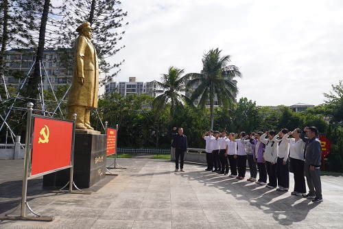 在张云逸将军纪念馆,全体党员面向党旗,在张云逸大将铜像前庄严重温入党誓词。通过观看丰富的历史照片、珍贵文物、史料以及生动的场景复原,全体党员全面了解张云逸大将光辉奋斗的一生。老一辈无产阶级革命家的崇高精神与优良作风,深深激励着每一位党员。大家纷纷表示,作为新时代共产党员,特别是为服务海南自贸港建设的教育工作者,要从中汲取奋进力量,继承发扬革命传统,立足岗位践行初心使命。