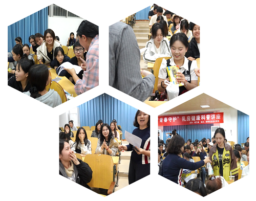 讲座期间,金影主任聚焦青少年乳房发育、乳腺常见疾病防治、自检方法及就医指引等核心内容讲解,针对师生提出的乳腺健康相关疑问进行了精准解答,有效帮助师生厘清了乳腺健康认知误区,掌握科学养护知识。