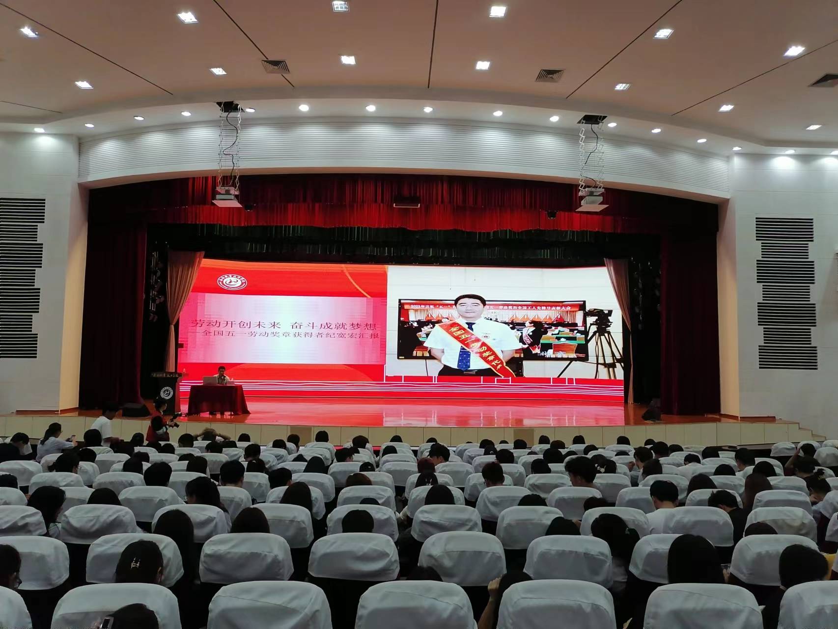 为迎接党的二十大胜利召开,6月2日晚“喜迎二十大,劳动最光荣”2022年全国五一劳动奖章获得者纪宽宏讲座分享活动在我校大礼堂举行。