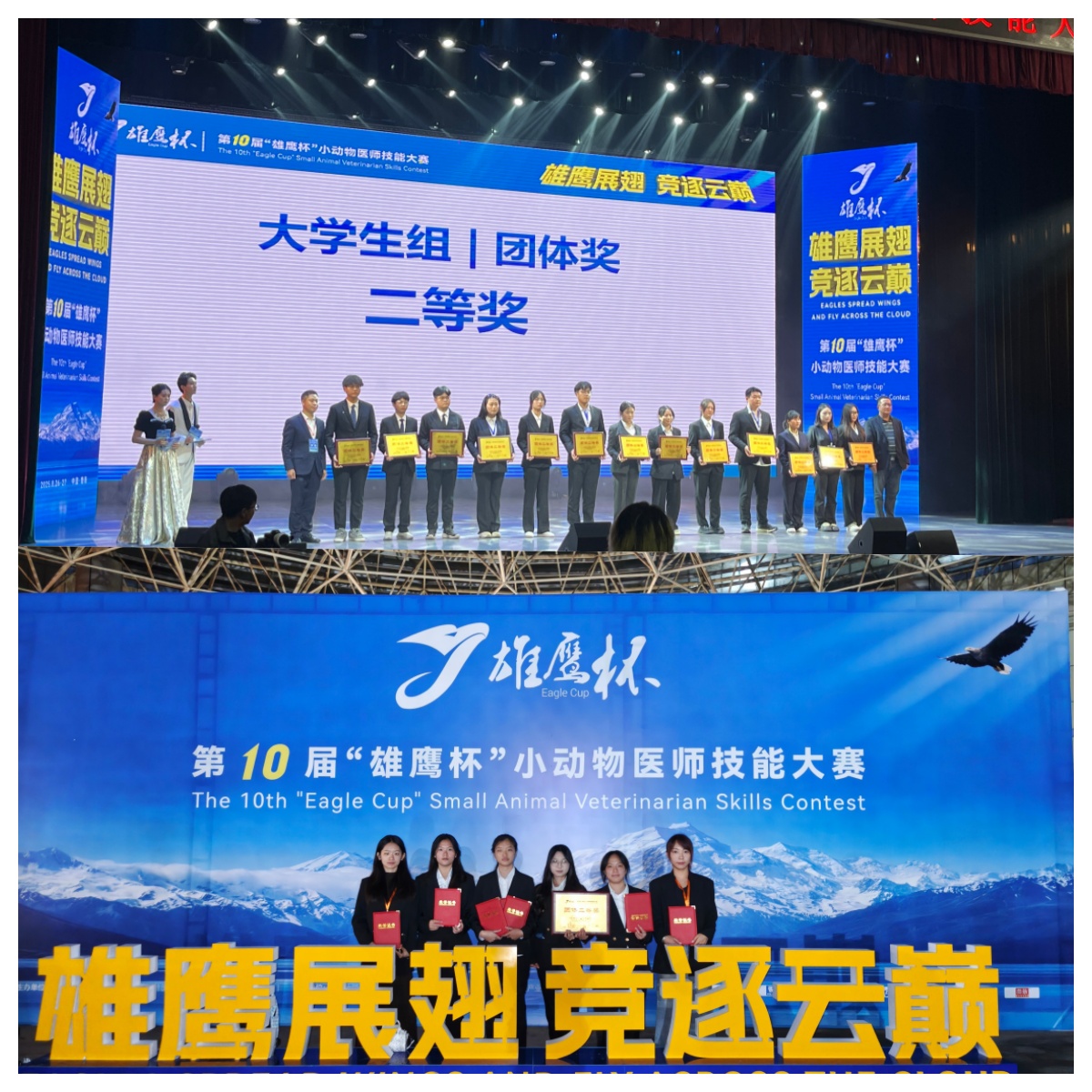 “雄鹰杯”小动物医师技能大赛是国内小动物医学领域极具权威性与影响力的专业赛事。在指导教师悉心带领下,参赛团队以临床实操能力与职业素养培育为主线,突出动物福利与诊疗规范,强化团队协作与创新思维训练,系统提升学生综合实践能力。
