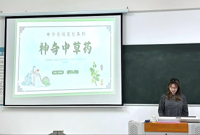 25中药学1班的张雍祺围绕中华传统中草药展开分享。她首先强调了生病及时就医的重要性,随后通过中西药对比,清晰阐释了中药副作用小、注重整体调理,西药见效快、注重对症除病的特点。他还以胖大海、山楂、人参等常见中草药为例,详细讲解其功效与生长环境,在趣味科普中传递实用中药知识与传统养生理念。
