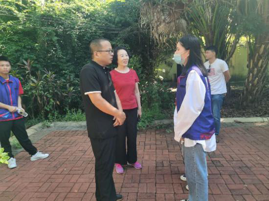 (在香草园进行调研,向工作人员了解园区情况并填写调研问卷。)