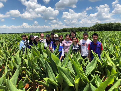 活动第二站是美兰区加有村海南碧凯药业有限公司莪术种植基地。通过访谈基地管理人员了解中药材莪术的GAP管理,对药品质量控制的源头有了了解。